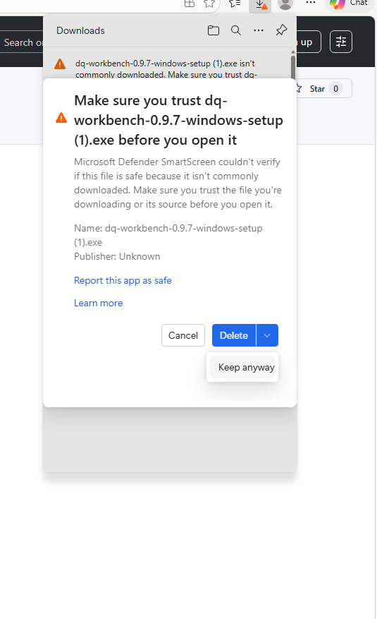 You may be prompted a second time by Microsoft Defender SmartScreen. In the bottom left of the dialog, choose “Keep anyway”